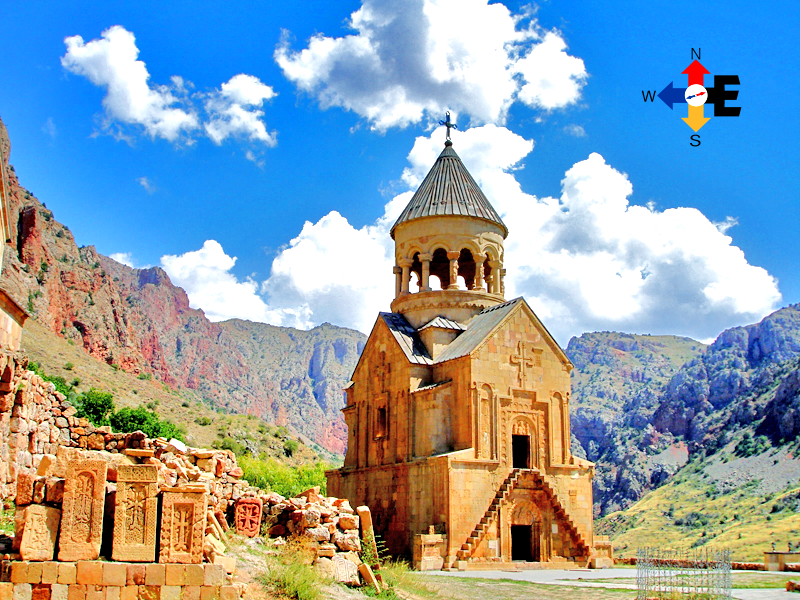 Красные скалы, живописное ущелье Амагу и уникальный монастырский комплекс Нораванк на вершине горы. На барельефе одной из церквей изображен сам Бог Отец! Правой рукой Он благословляет Распятие, а левой держит голову Адама с парящим над ней голубем, символизирующим Святого Духа. Панорамные фотографии, сделанные с высоты птичьего полета, еще долго будут напоминать об этом захватывающем путешествии.